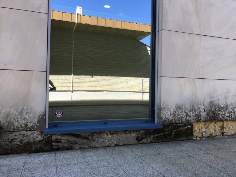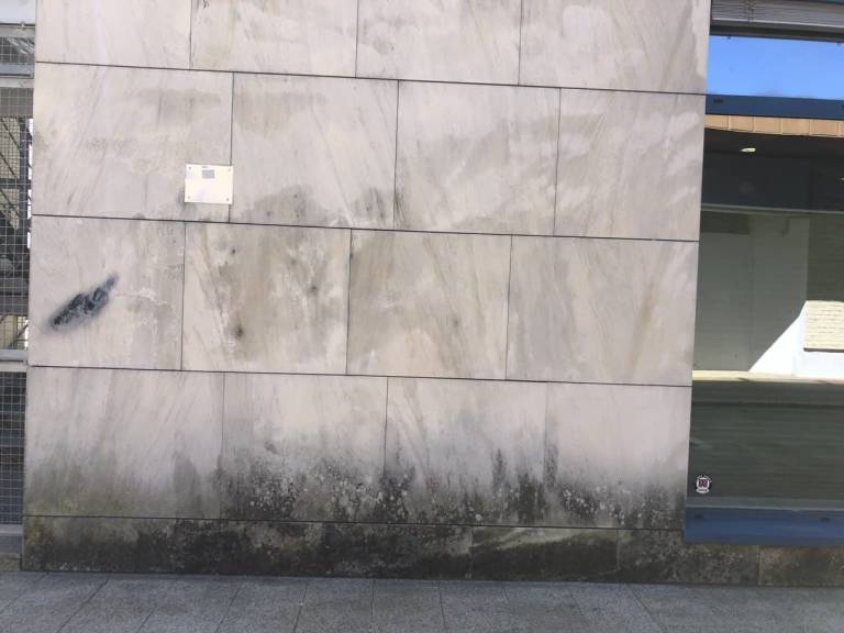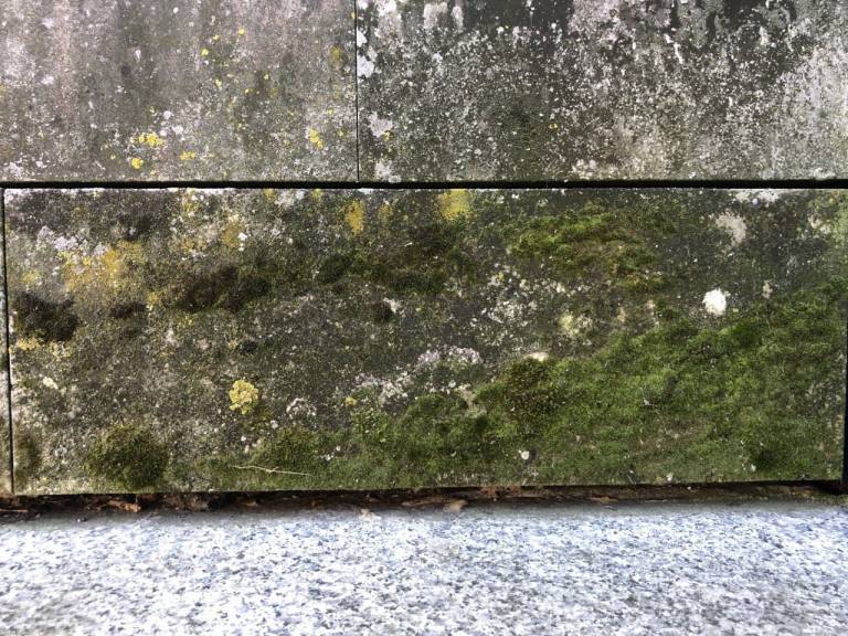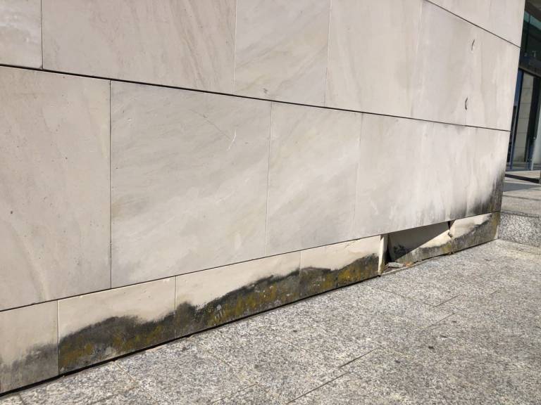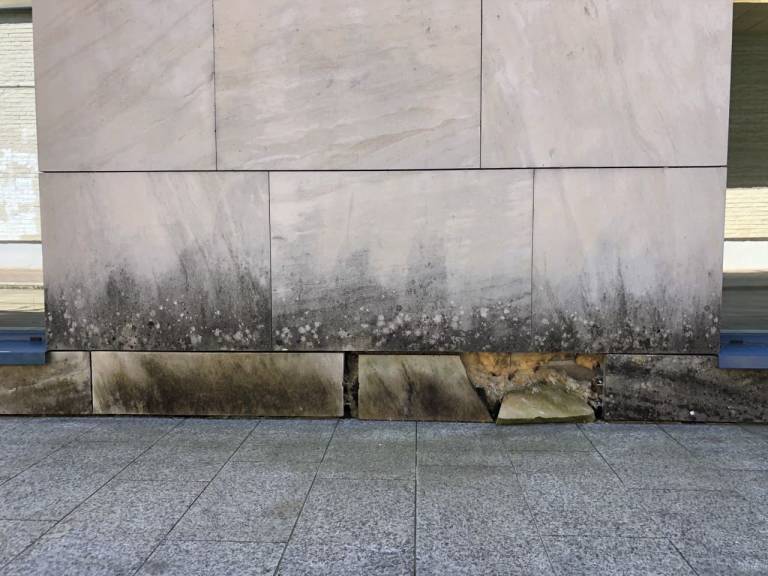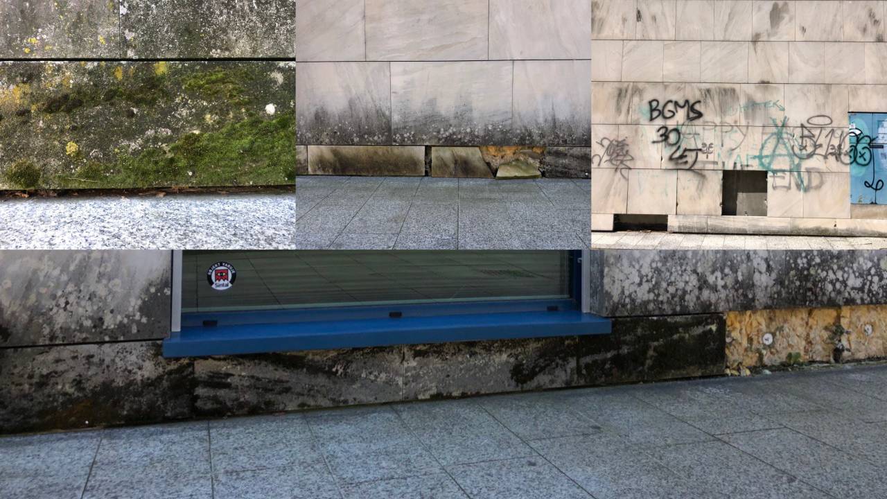 Z leti so se na obstoječi kamniti fasadi iz naravnega kamenega peščenjaka, pojavile poškodbe zaradi bioorganizmov, kot so alge, glive, lišaji in mahovi.