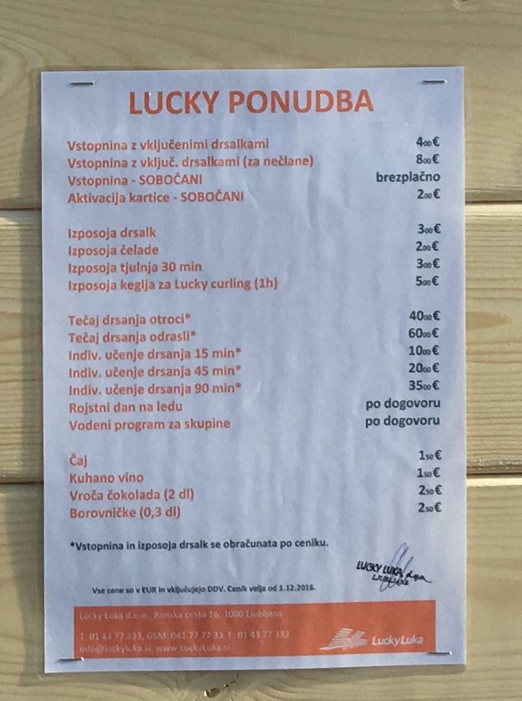 Drsališče, ki je prava popestritev v središču mesta zadnjih nekaj let je zimske užitke ponujalo brezplačno, razen plačila za izposojo drsalk, ki je znašalo dva evra. Ena od zanimivejših novosti letos na drsališču je kartica, s katero se plačujejo storitve na drsališču.