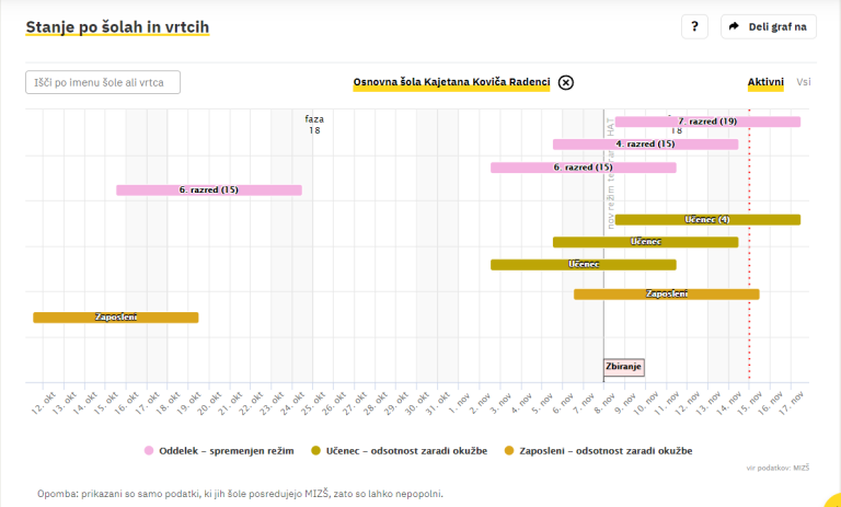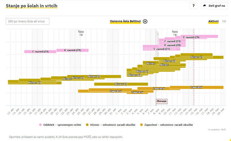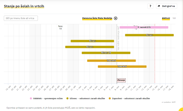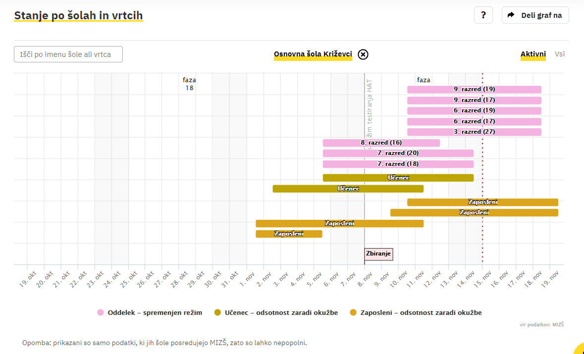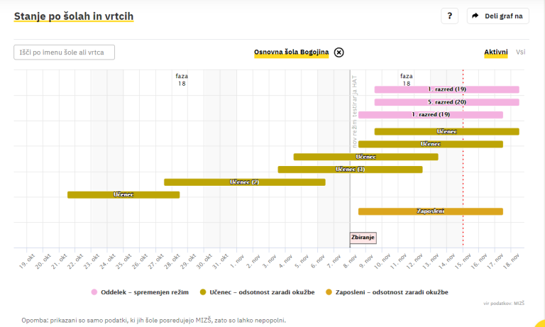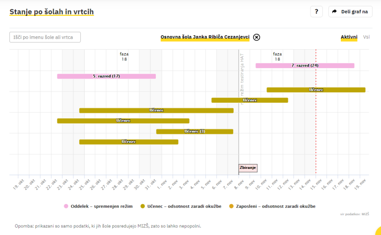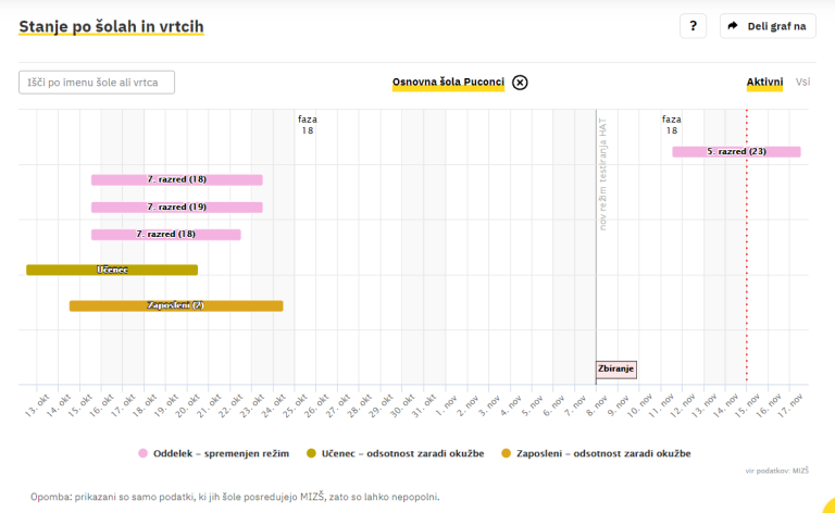 Jutri. 16. novembra, se bo karantena prekinila za celoten oddelek 7. razreda, kjer je bilo zaradi potrjene okužbe pri učencu v karanteni 19 oseb.