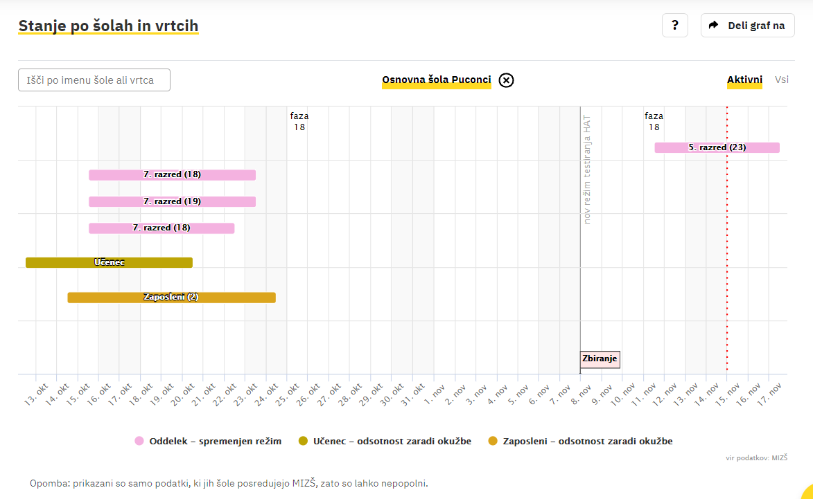 Z današnjim dnem se karantena prekine za učence 7. razreda, kjer je bilo v času od 2. do 14. novembra v karanteni 20 oseb, okužen pa je bil učenec oziroma več učencev oddelka.