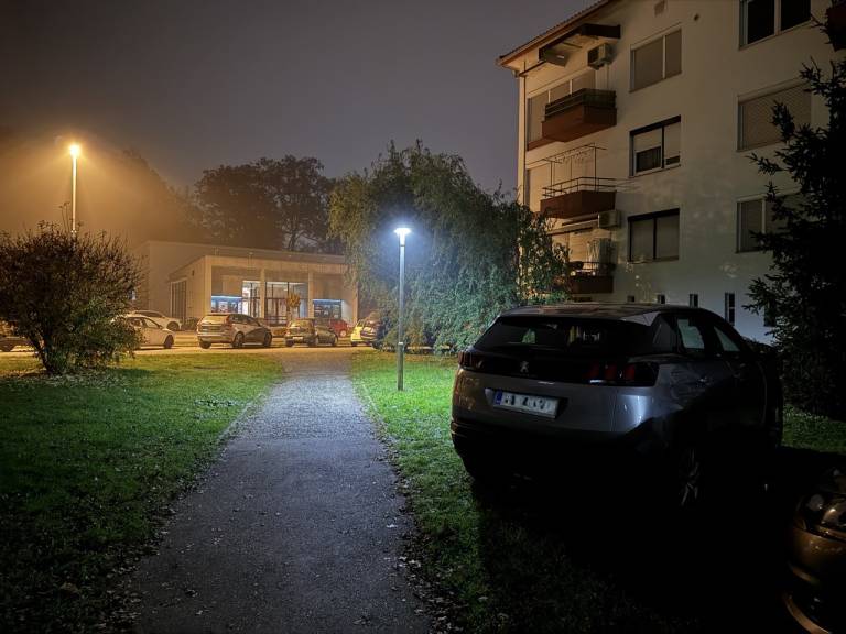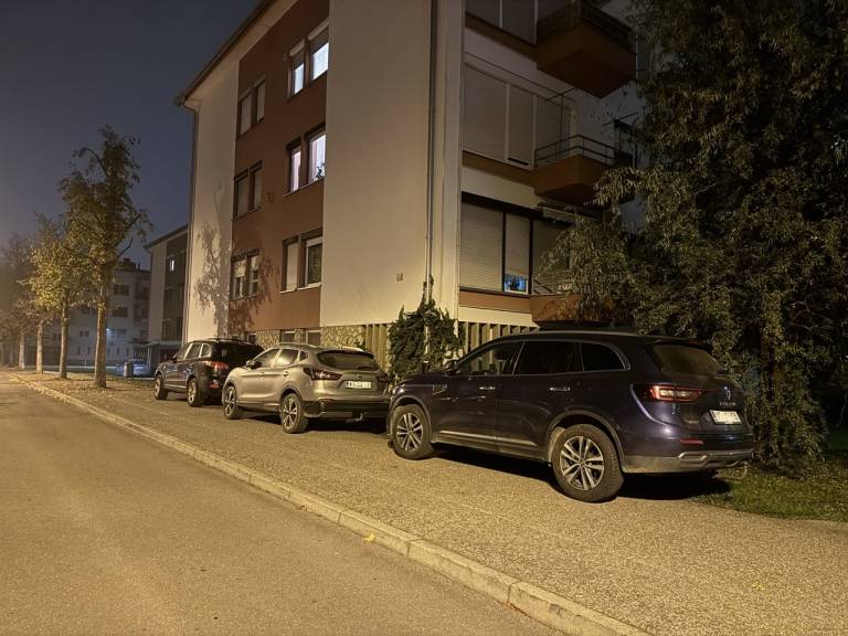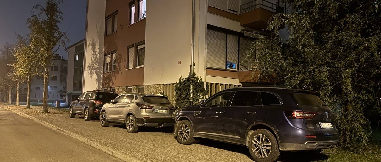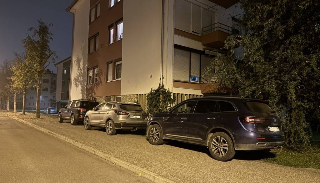 Le nekaj metrov naprej, je na zelenici ob stanovanjskem bloku lastnik parkiral svojega Peugeot SUV-ja.