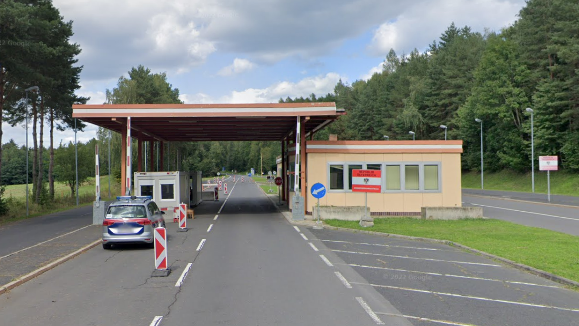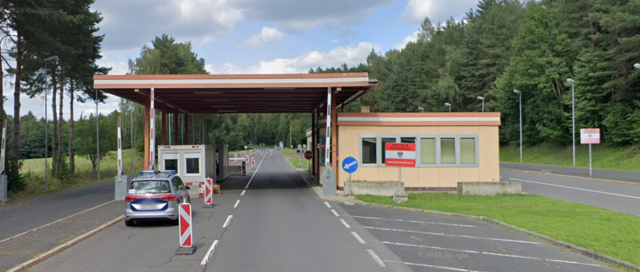 Na cesti proti mejnemu prehodu med Slovenijo in Avstrijo je postavljena naprava za nadzor prometa.