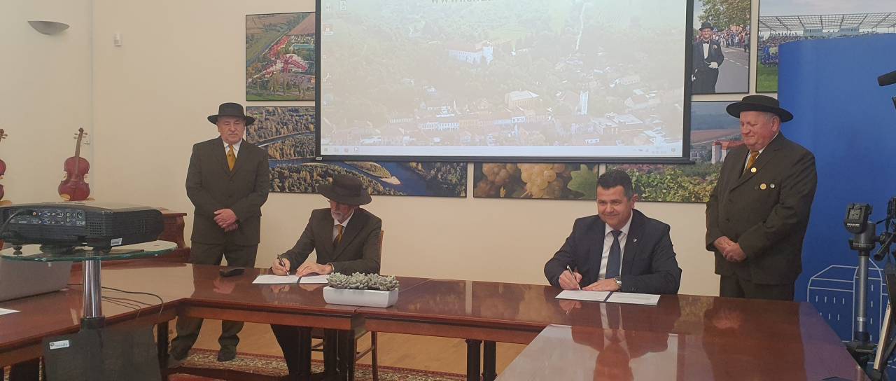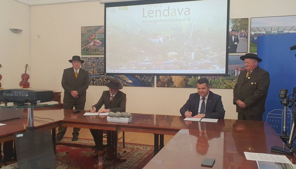 Štefan Cigut, predsednik Čebelarskega društva Lendava, in Janez Magyar, župan občine Lendava, sta danes podpisala pogodbo o brezplačni uporabi zemljišč ob Dvojezični osnovni šoli I Lendava.