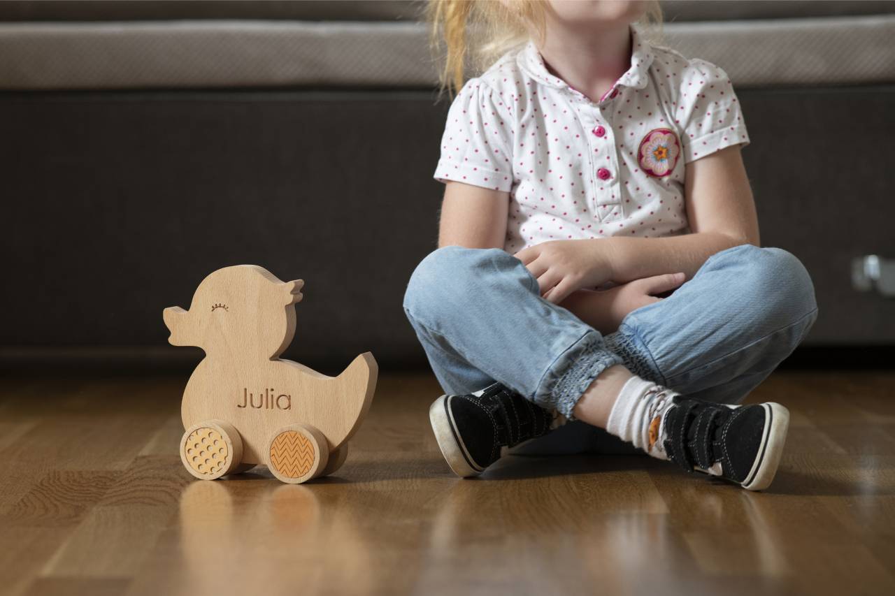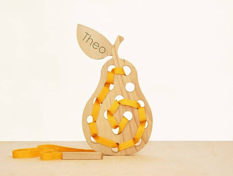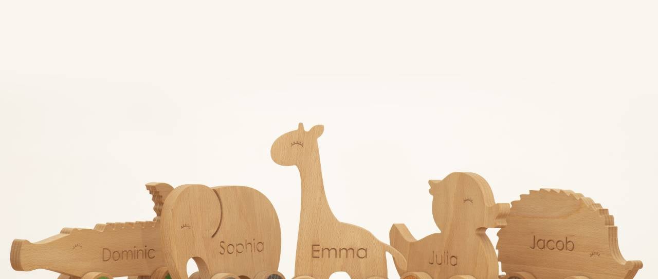 Ponujata personalizirane lesene igračke (živali) na kolesih, lesene sestavljanke iz črk imena, različne Montessori izdelke za razvoj ročnih spretnosti (npr. sadje za kvačkanje), izdelke za sledenje abecede in števil, tri vrste geometrijskih sestavljank (tangram, sestavljanka iz preprostejših in kompleksnejših geometrijskih oblik), prav tako pa personalizirane kartice za mejnike in abecedne kartice, ki so na voljo v treh različnih jezikih (slovenskem, nemškem in angleškem).