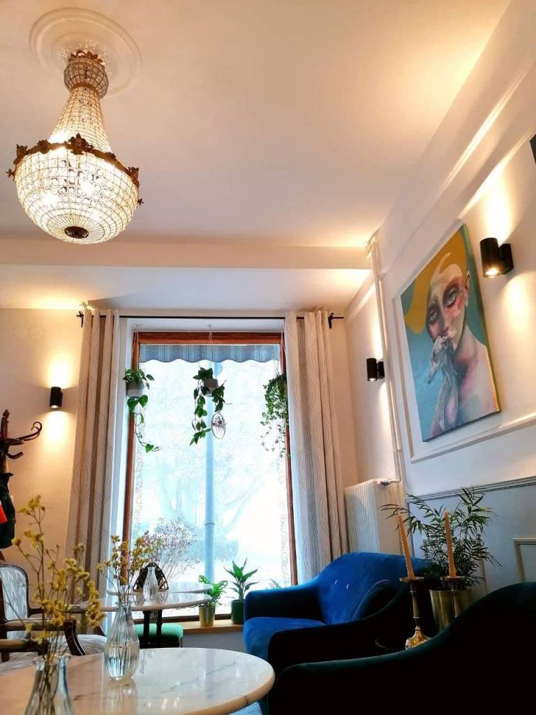 Kavarna je urejena v 'árt deco' slogu z 'vintage' pridihom. Opremljanje in ureditev prostora pa je bil prav za vse člane iz kavarne Torteraj prijeten izziv. Celotna družina ima namreč rada umetnost.
