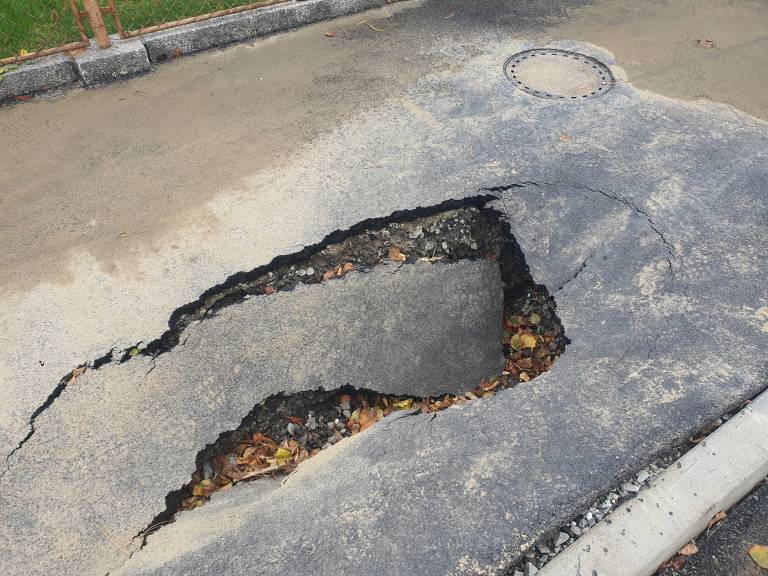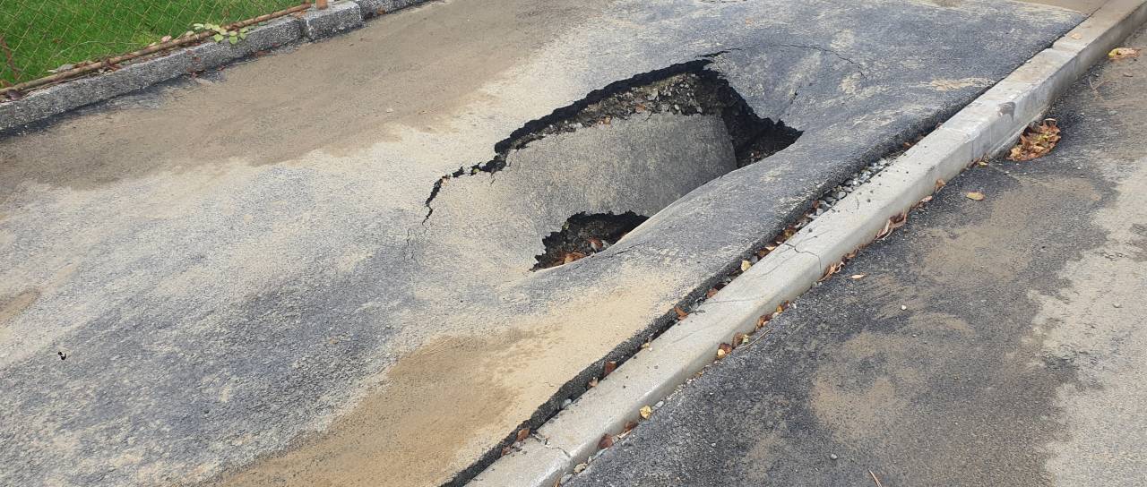 Luknja v pločniku na Severjevi ulici še vedno ni sanirana.