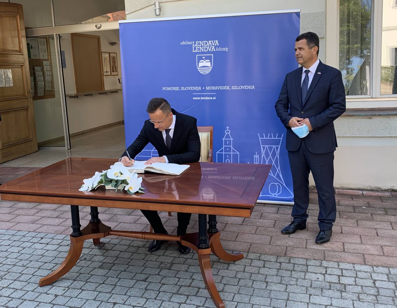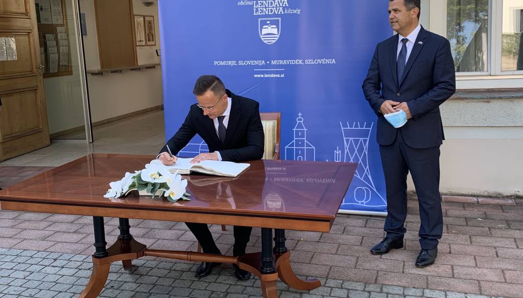 Szijjarto se je sestal tudi s predsednikom narodne skupnosti Ferencem Horvathom in voditelji skupnosti ter soboškim škofom Petrom Štumpfom. Vpisal se je tudi v častno knjigo Lendave - svetovne prestolnice bograča.