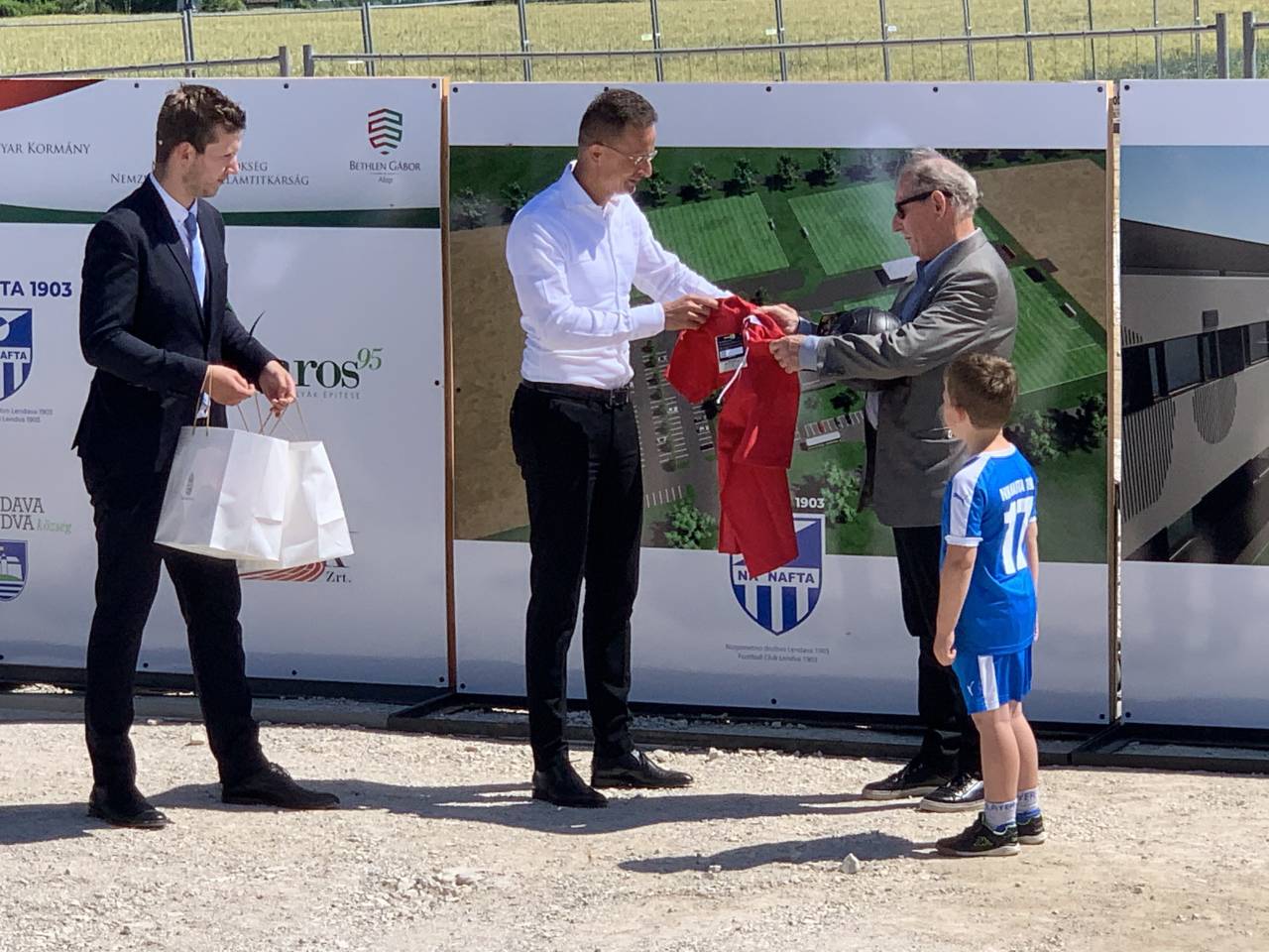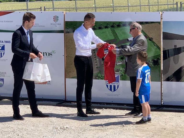Madžarskemu ministru Szijartu v Lendavi podelili naziv častnega občana, položili tudi temeljni kamen za nogometno akademijo.