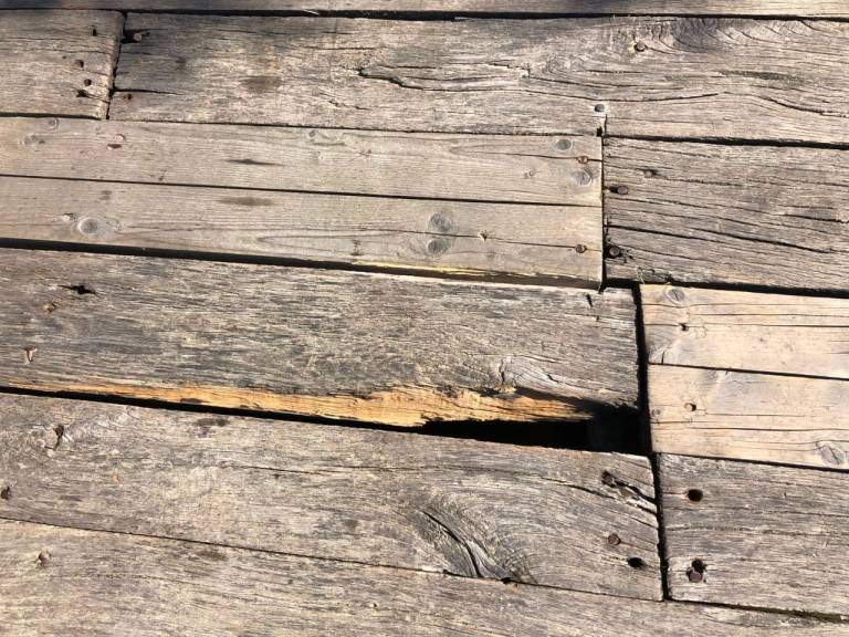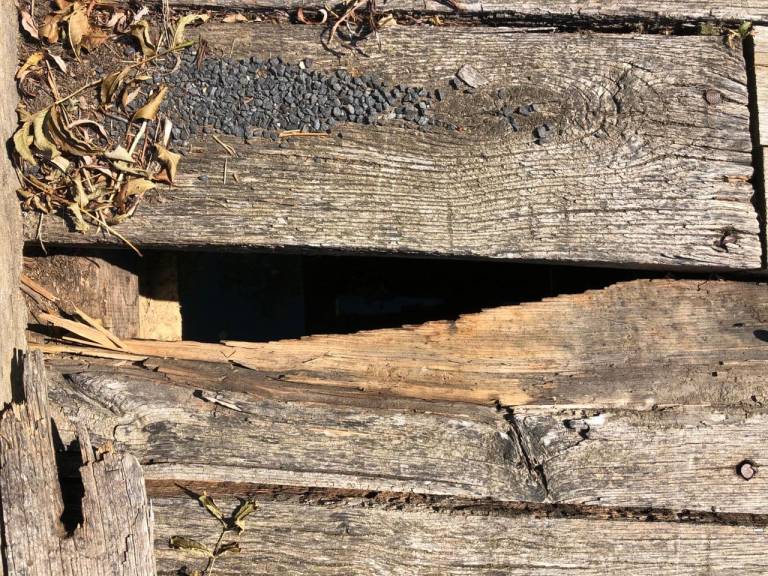 Most je zaradi velikih lukenj nujno potreben sanacije, ker je v nasprotnem primeru zelo nevaren za promet.