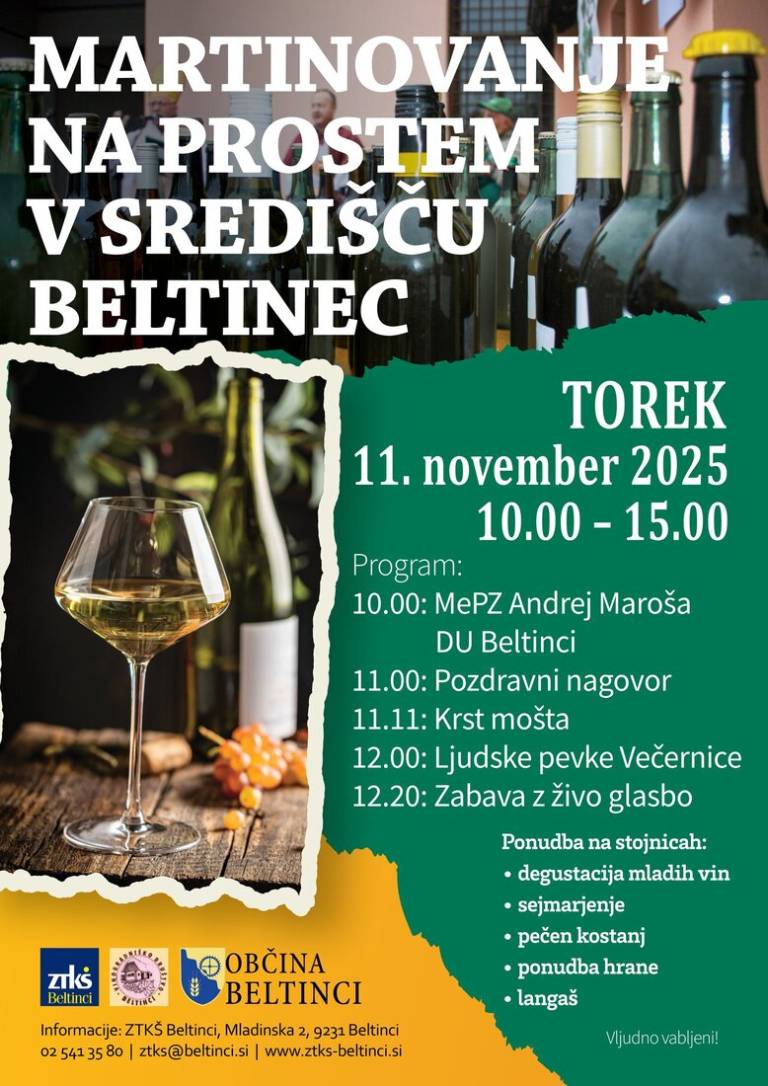 V Beltincih bo tudi letos veselo in praznično obarvano, saj bo v torek, 11. novembra 2025, med 10. in 15. uro, v središču kraja potekalo tradicionalno martinovanje na prostem.