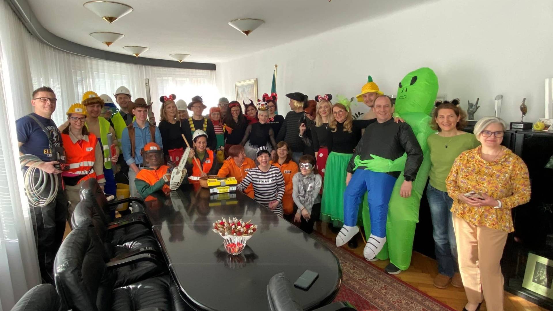 »Moje sodelavke in sodelavci pustni torek jemljejo zelo resno in se vsako leto potrudijo s svojo ustvarjalnostjo. Raznolike maškare so danes zavzele mojo pisarno in s tem simbolično prinesle sonce in dobro energijo,« je ob objavi zapisal Anželj.