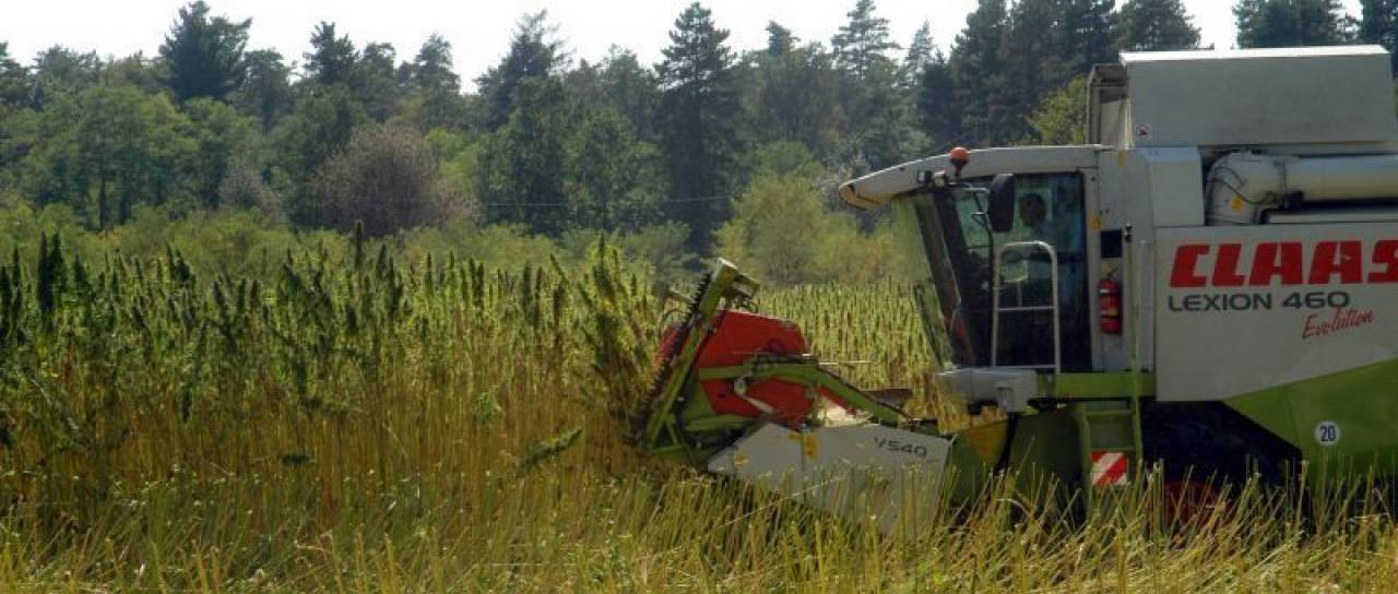V Cvenu je včeraj med košnjo industrijske konoplje zagorel kombajn.