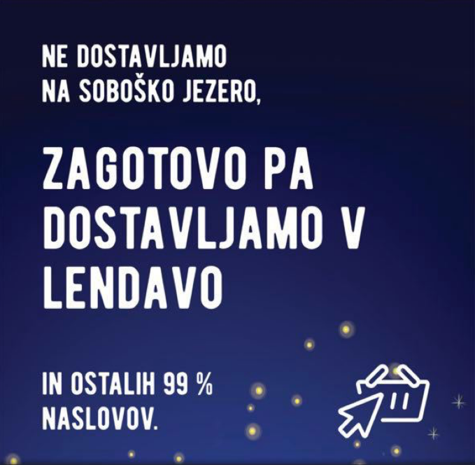 Na kaj natanko se torej nanaša geslo: »Ne dostavljamo na Soboško jezero, zagotovo pa dostavljamo v Lendavo in na ostalih 99 odstotkov naslovov«?