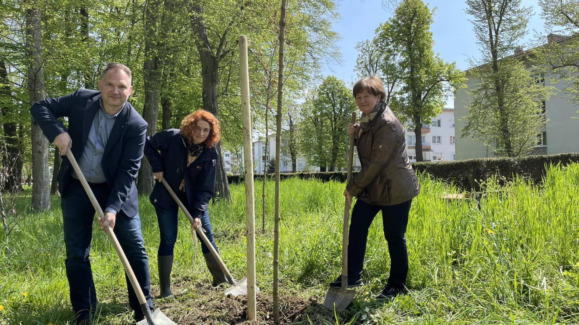 Župan Mestne občine Murska Sobota Damjan Anželj je z vodjo oddelka za okolje in prostor Angelco Dokl Mir ter sodelavko podjetja Komunala Melito Varga Lemut tam zasadil tri mlade poljske javorje.