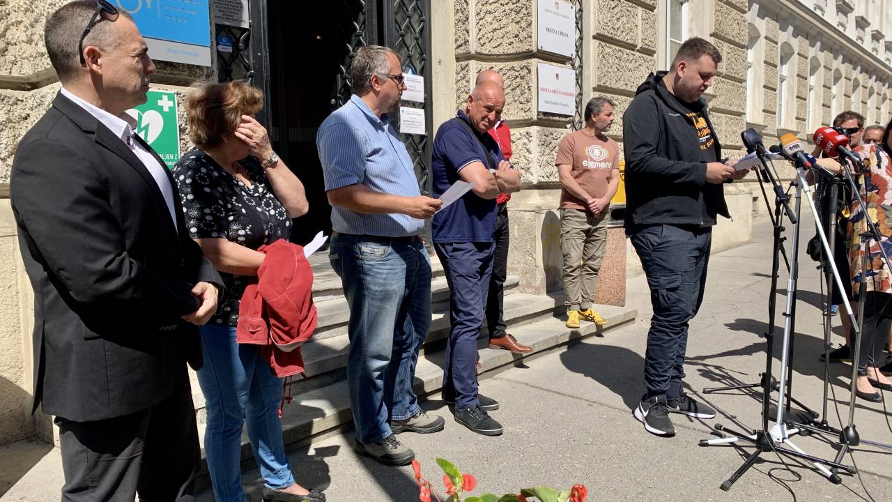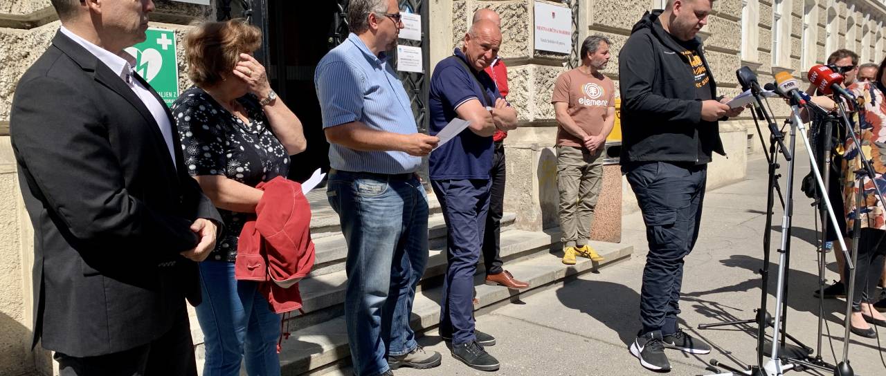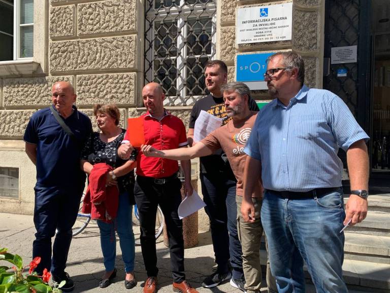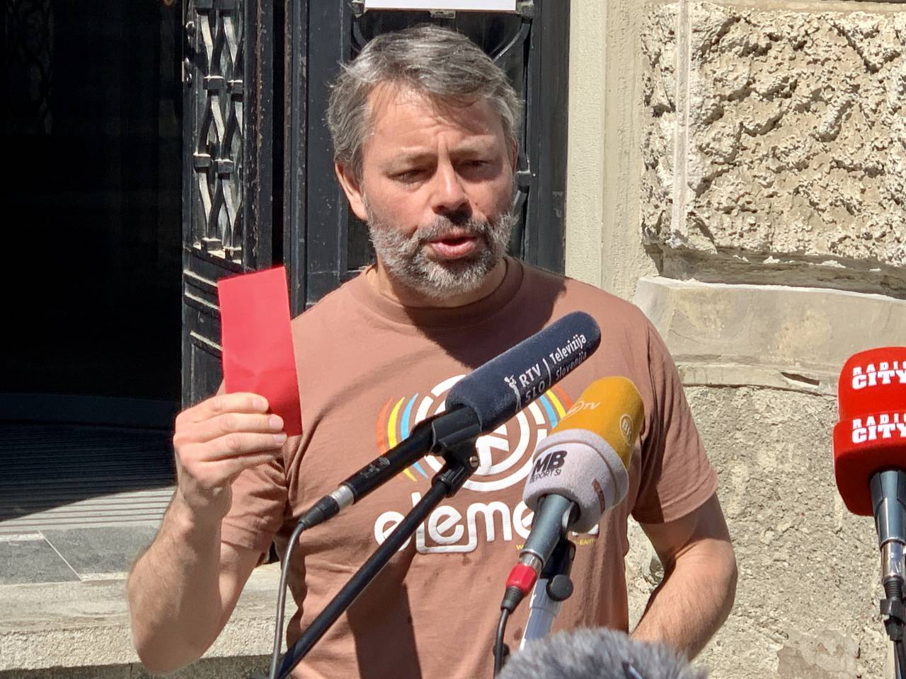 Pred stavbo mestne občine so Arsenoviču pokazali rdeč karton