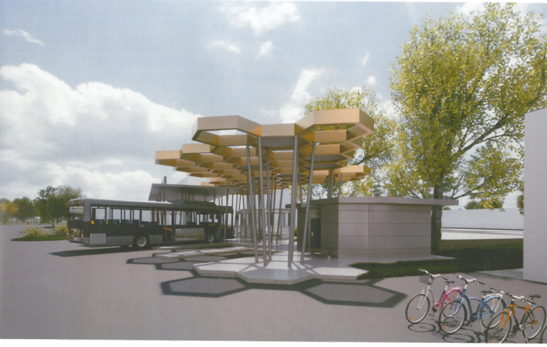 Pokriti peron za pet avtobusov, čakalnice in sončne elektrarne