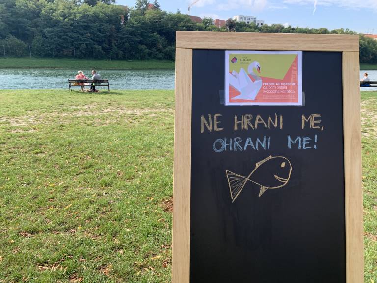 Na predlog občanke Nadke, ki someščanov ni uspela prepričati, da je hranjenje živali s kruhom škodljivo, Mestna občina Maribor obiskovalce parkov in Lenta nagovarja s sloganom 'Ne hrani me! Ohrani me.'
