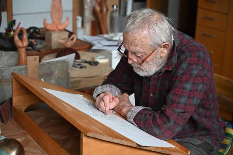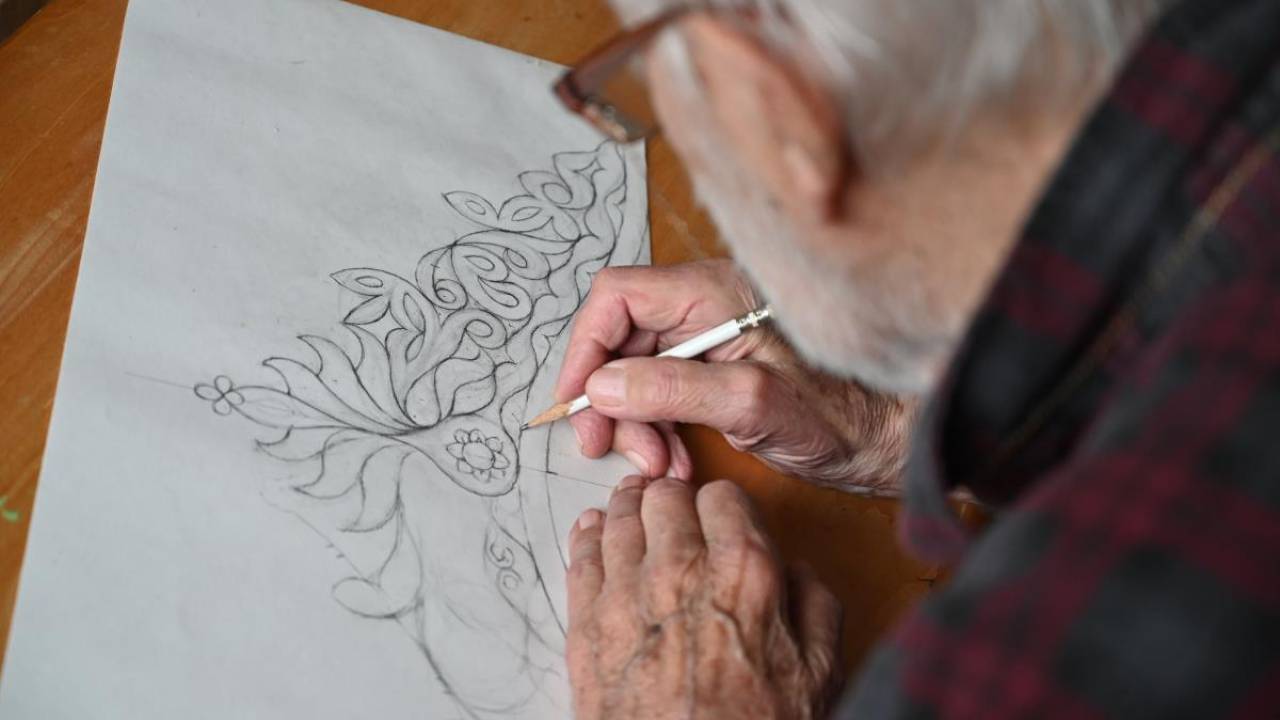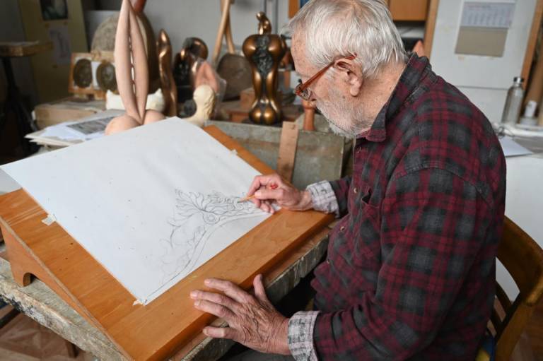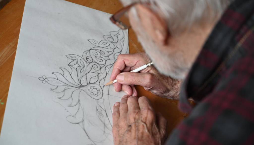 Krona, izdelana iz medenine, obogatena s poldragimi kamni, odraža umetnikovo 60-letno ustvarjalno pot.