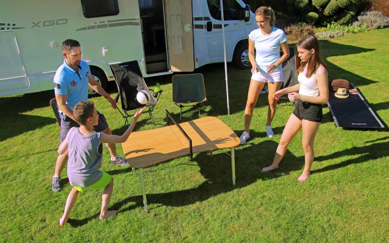 Miza je narejena iz kakovostnega bambusovega lesa in aluminijaste konstrukcije. Uporablja se lahko tudi za aktivnosti na prostem, za kampiranje in kot dodatna miza za dom. Je popolnoma zložljiva in jo je mogoče enostavno nastaviti na tri višine, kar omogoča igranje tudi manjšim otrokom in igranje v sedečem položaju, ki je še posebej primerno za starostnike, invalide in osebe s posebnimi potrebami.