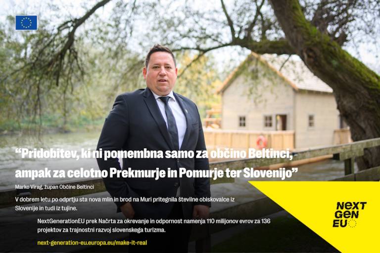 »Nova mlin in brod sta pridobitev, ki ni pomembna samo za občino Beltinci, ampak za celotno Prekmurje in Pomurje ter Slovenijo, saj je to je edini plavajoči mlin, ki je dejansko del naše kulturne dediščine in tradicije,« pravi Marko Virag, župan občine Beltinci.