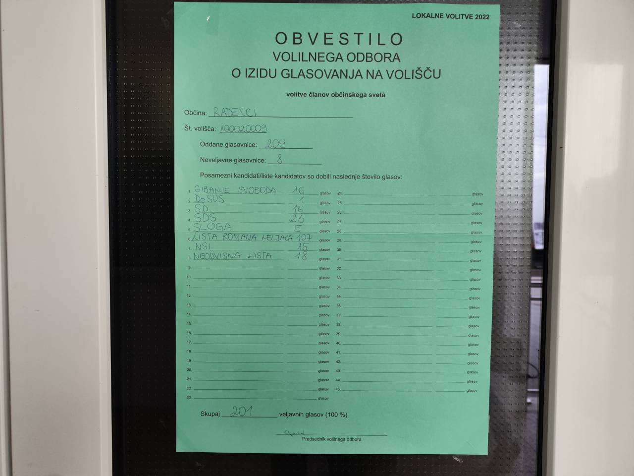 V občini Radenci so bile v nedeljo predčasne volitve v občinski svet. Trenutni, neuradni rezultati kažejo v prid Listini Romana Leljaka, obeta se jim osem mandatov, opozicija bo zasedla sedem stolčkov.