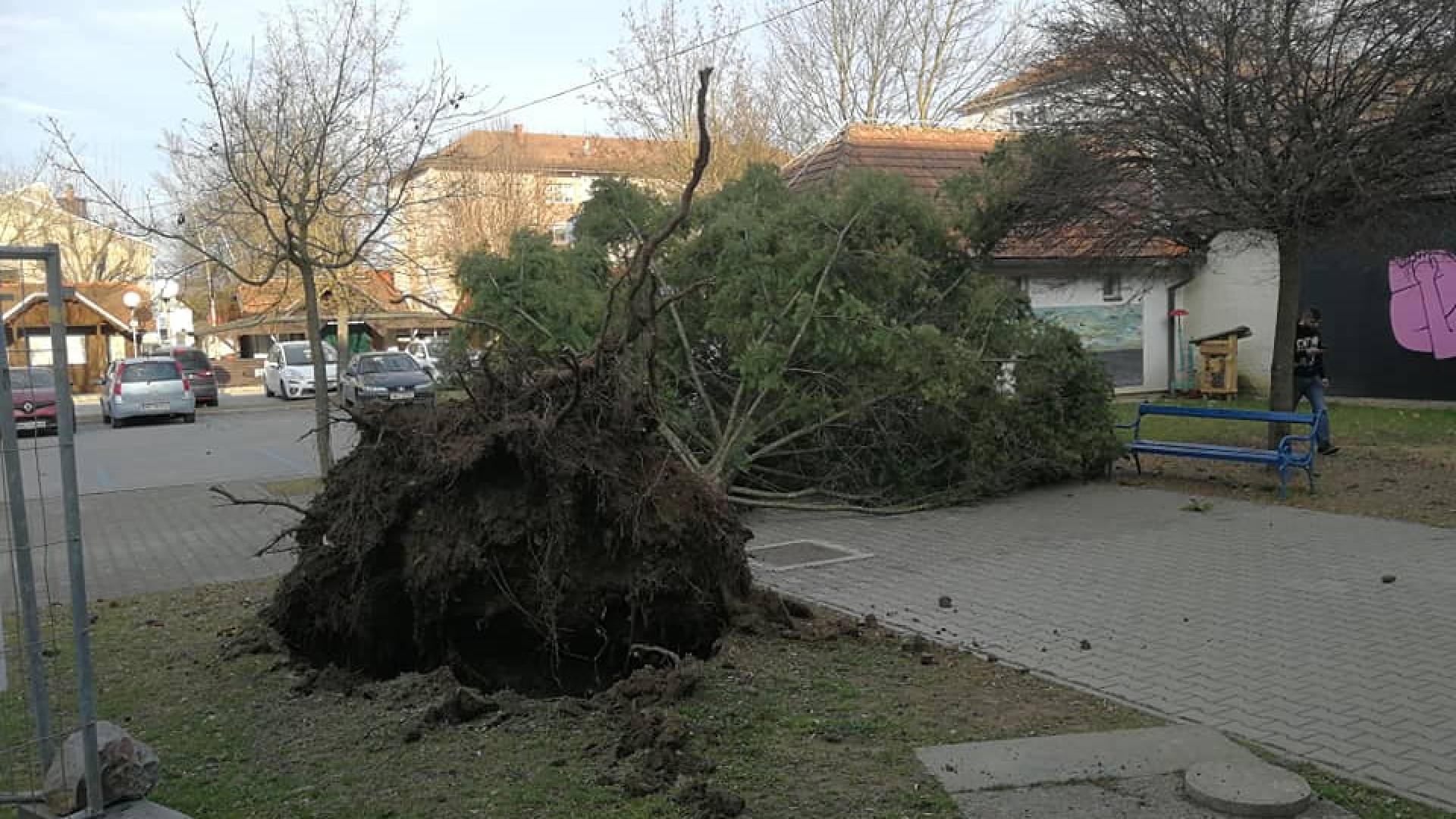Iz Uprave Republike Slovenije za zaščito in reševanje so sporočili, da je nekaj minut čez peto uro močan veter podrl drevo popoldne na cesti Mačkovci - Vidonci in v Gornji Radgoni. O dogodku je bilo obveščeno komunalno podjetje.