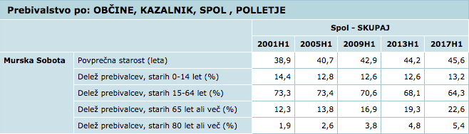 Povprečna starost prebivalca celo višja od povprečja