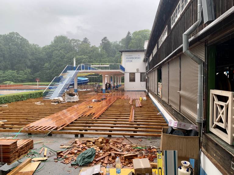 Na Mariborskem otoku bodo kopališče odprli šele to soboto, saj je pri 775.000 evrov vredni delni prenove prišlo do zamude. Tudi zaradi slabega vremena, kot je bil današnji dež.