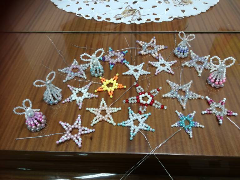 Iz perlic izdelali angelčke, zvezdice in druge izdelke