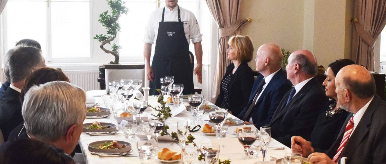 Častnim konzulom, ki so bili prisotni na kosilu, so se predstaviti mesarstvo Kodila, Panvita, Marof, projekt Expano in Kompas Pomurje, rdeča nit predstavitve pa je bila kuharska knjiga Mateja Fišerja, Tradicionalna prekmurska kuharica, na podlagi katere je Leon Pintarič pripravil sodobni prekmurski meni.