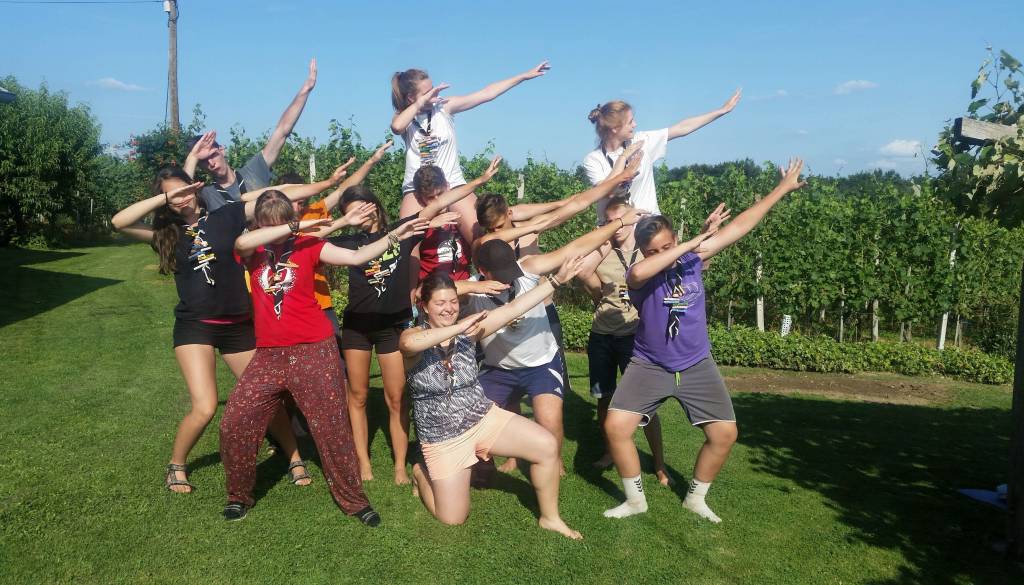 Včeraj jih je pot vodila v Gerlince, kjer so na eni zmed kmetij pomagali pri različnih opravilih. Nekateri so kosili travo in čistilo okolico hiše, urejali rože in čistili okna, pomagali pa so celo pri postavljanju kanalet. Ker je noč prej v vasi divjalo neurje s točo, so na isti domačiji hitro skočili na pomoč tudi pri sanaciji strehe in lastnikom pomagali del poškodovane strehe na novo prekriti. Seveda so si za vso nesebično pomoč prislužili kar nekaj obilnih obrokov in prenočišče za še eno noč na prostem.
