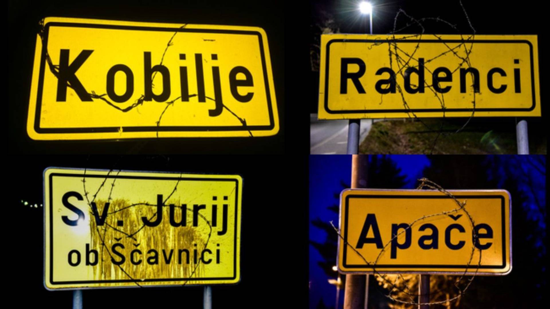 V noči na kulturni praznik so aktivisti ovili bodečo žico okoli občinskih tabel.