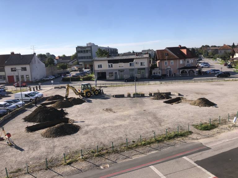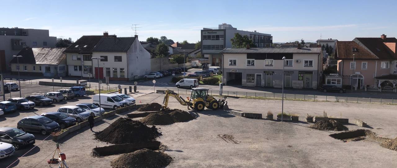 Na parkirišču ob Slomškovi ulici so danes že zabrneli delovni stroji. Pričela so se pripravljalna dela za gradnjo poslovno stanovanjskega objekta, ki pa je bil včeraj tudi tema na seji Mestne občine Murska Sobota.