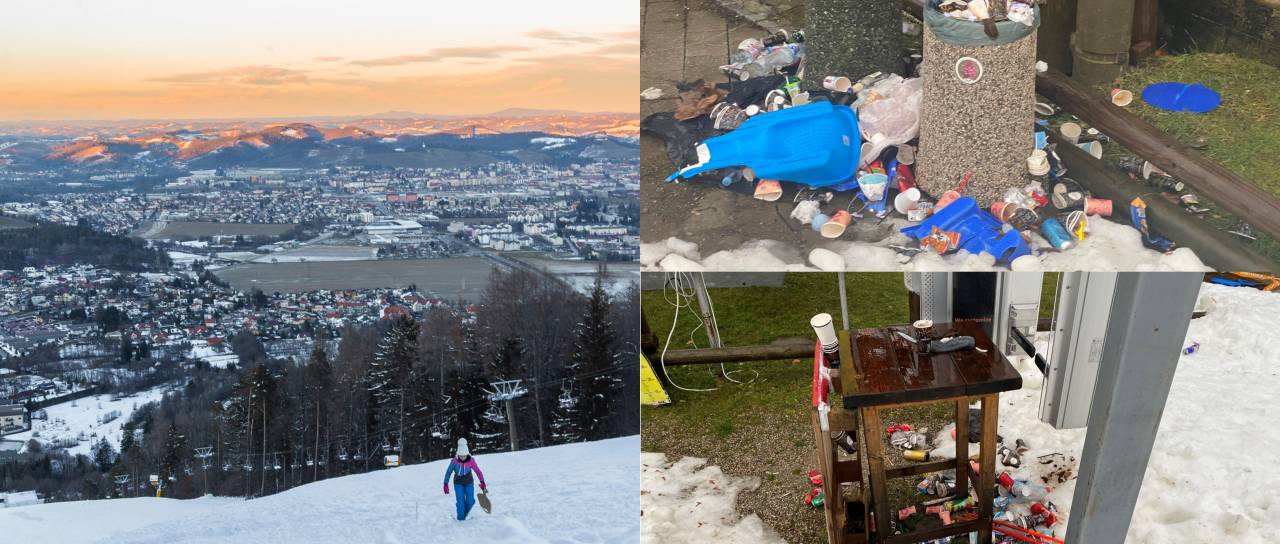 »Ogledalo staršev, ki so ta vikend pripeljali svoje otroke na sankanje pred hotel Arena,« je ob objavljenih fotografijah kupov smeti pod Snežnim stadionom na družbenem omrežju Facebook oster Bernard Majhenič, direktor Marproma.
