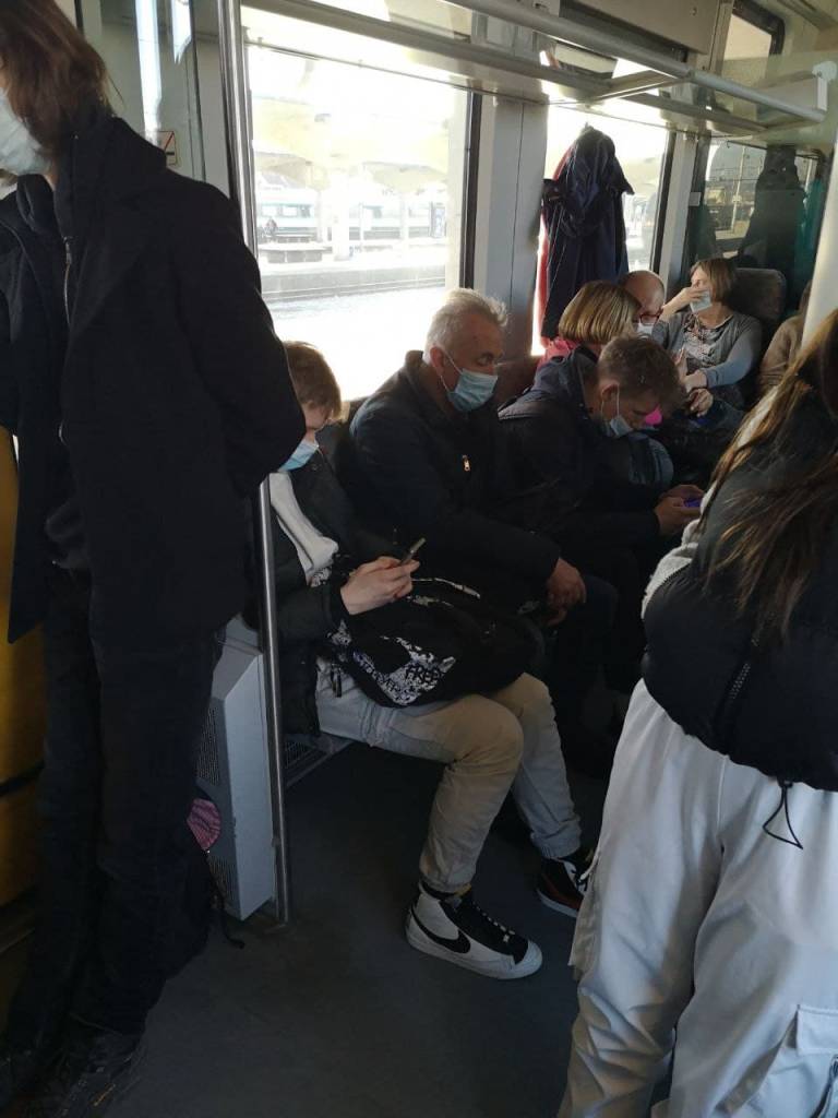 Opisala je, da vlak na poti do Dobove ni nikoli zapustil Ljubljane. Tako je stal na mestu skoraj dve uri. Opiše, da je vlak tako poln, da ljudje »stojijo in sedijo drug na drugem«.