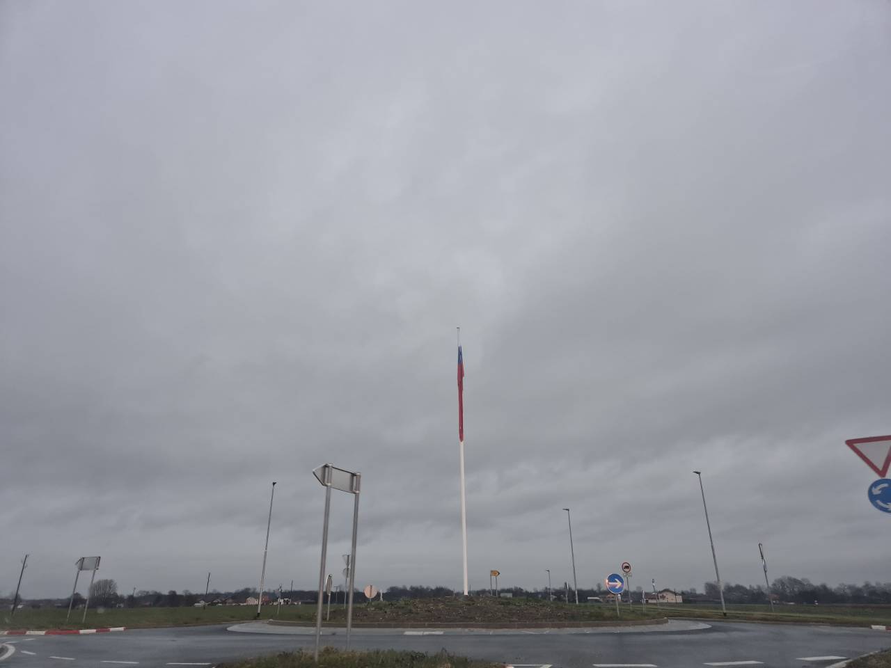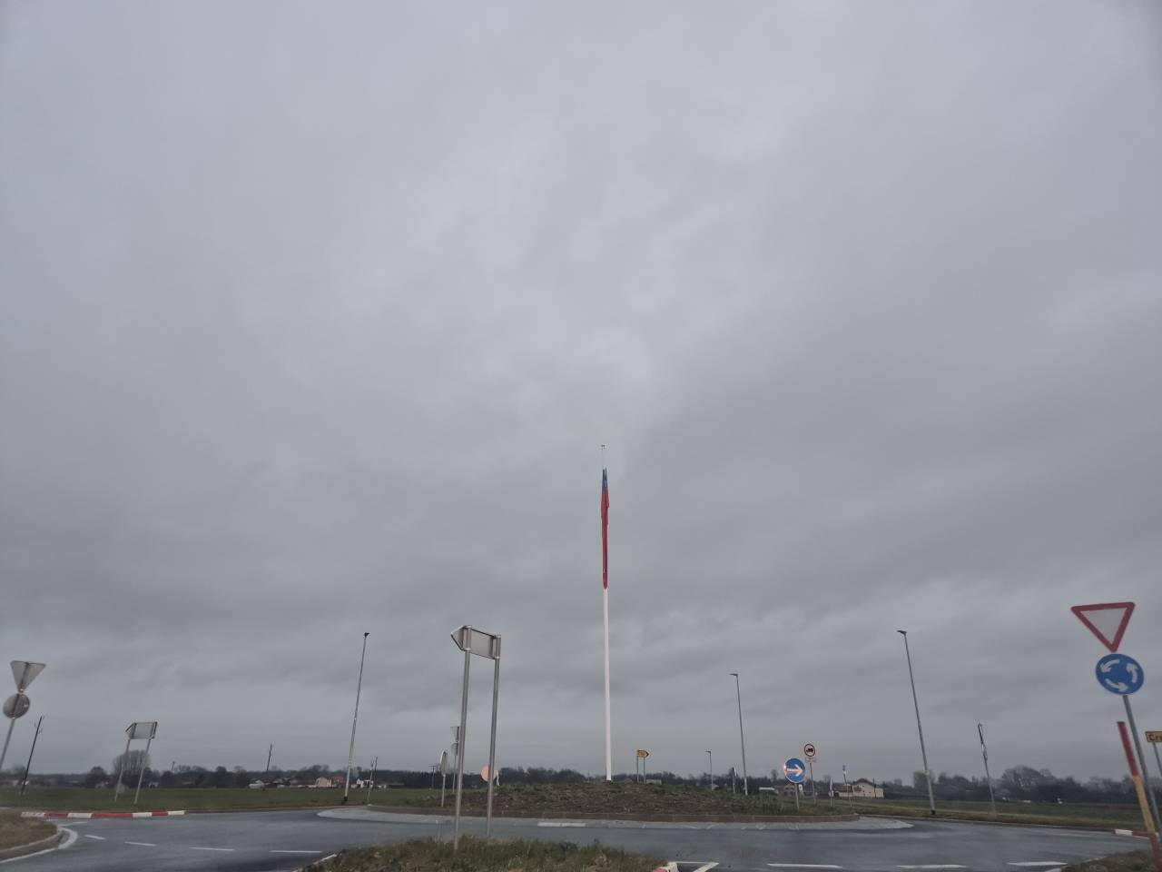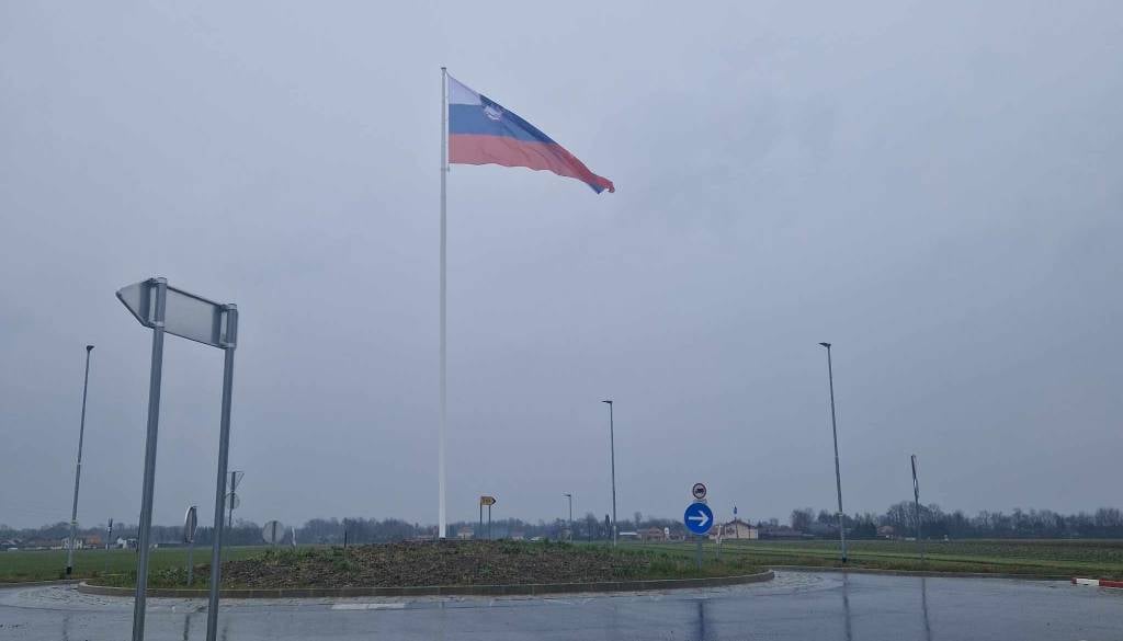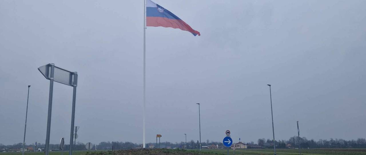 V novem krožišču v občini Črenšovci zdaj ponosno vihra velika slovenska zastava na 12-metrskem drogu.