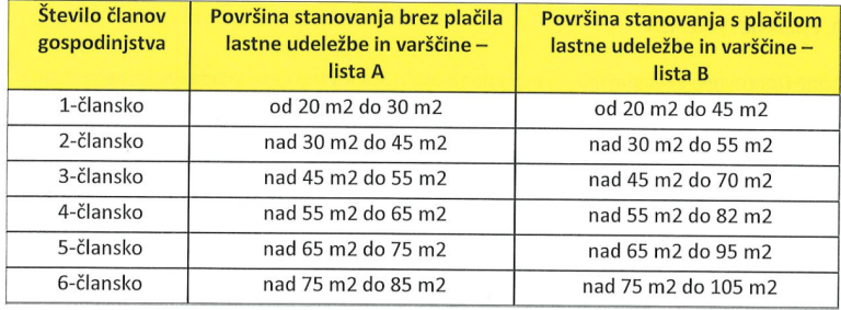 Pri dodelitvi neprofitnih stanovanj se upošteva površinski normativ. Na spodnji sliki lahko preverite, ali vaše gospodinjstvo ustreza površinskim normativom iz razpisa.