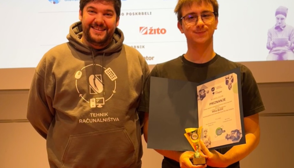 Tekmovanje je bilo marca letos, zaključna podelitev pa je bila v petek, 9. maja, v Ljubljani. Miha Božič je z izjemno aplikacijo navdušil strokovno komisijo in prejel priznanje za najboljšo spletno aplikacijo med dijaki.