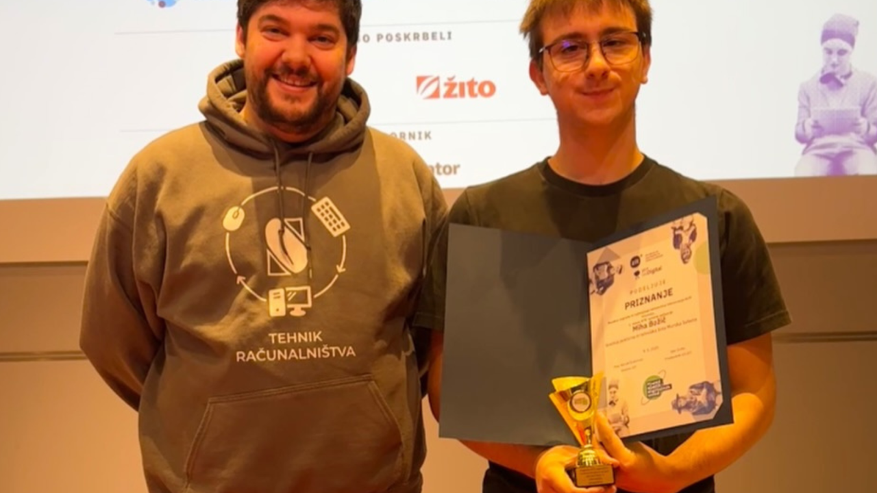 Miha Božič, dijak programa tehnik računalništva na Srednji poklicni in tehniški šoli Murska Sobota, je na slavnostni podelitvi na Gospodarski zbornici Slovenije prejel najvišje priznanje na tekmovanju ACM Slovenija za izdelavo spletnih aplikacij.