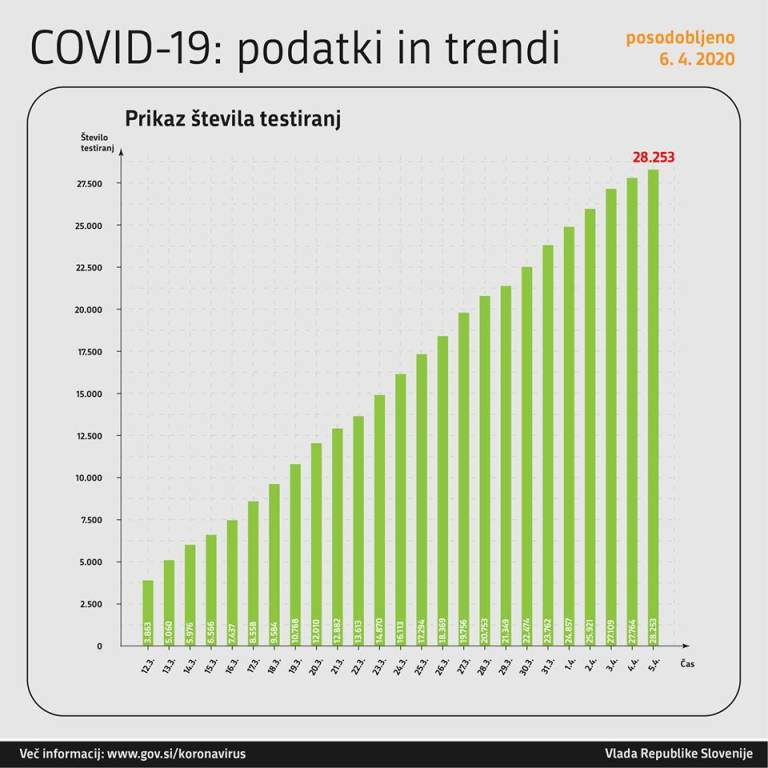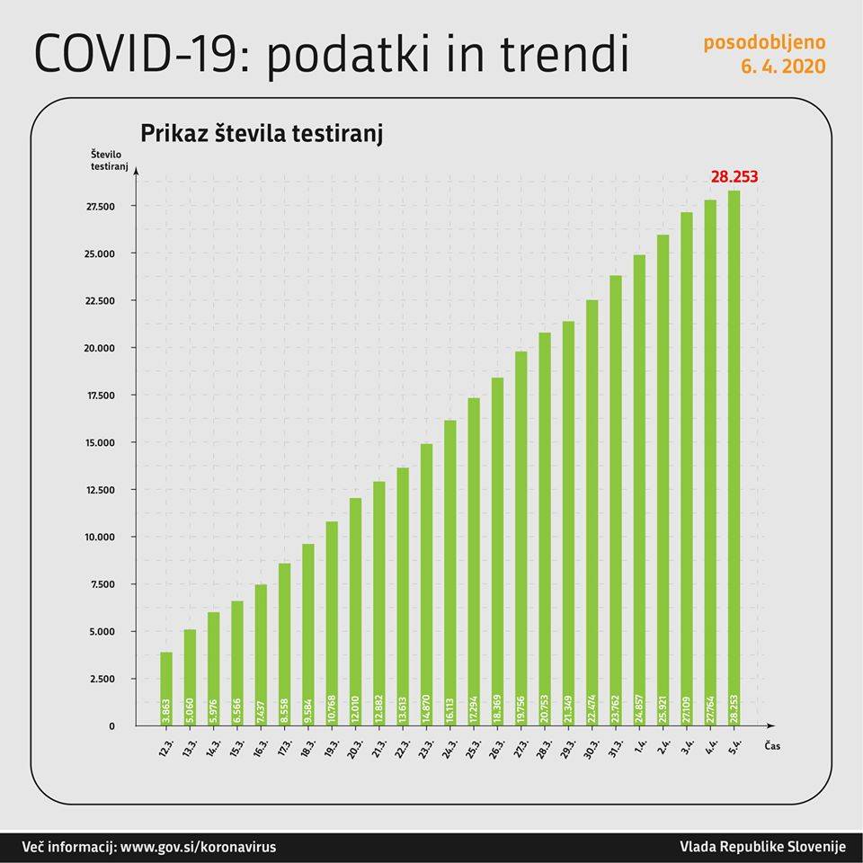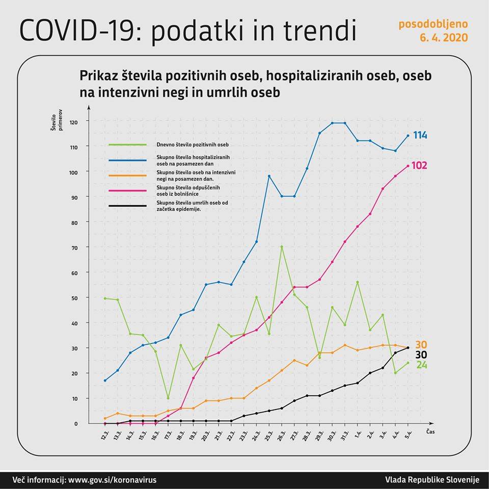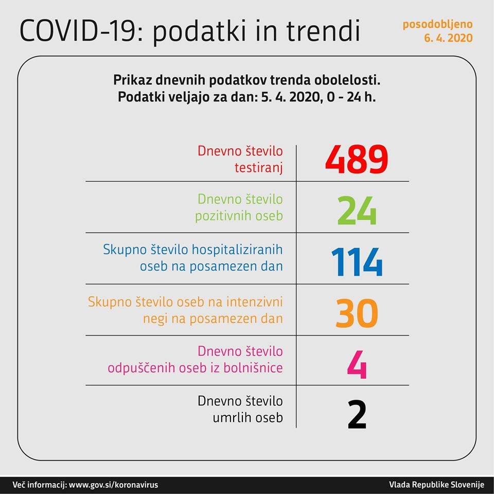 V nedeljo opravljenih 489 testiranj od tega je bilo 24 oseb pozitivnih. Hospitaliziranih je 114 oseb, od tega jih je 30 na intenzivni negi. Včeraj sta za koronavirusom umrli dve osebi, skupno že 30 žrtev koronavirusa.