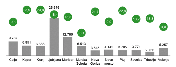Največjo rast je imela območna služba Murska Sobota, nadpovprečno je brezposelnost porasla še v območni službi Maribor, območni službi Koper, območni službi Celje, območni službi Ptuj in območni službi Sevnica.