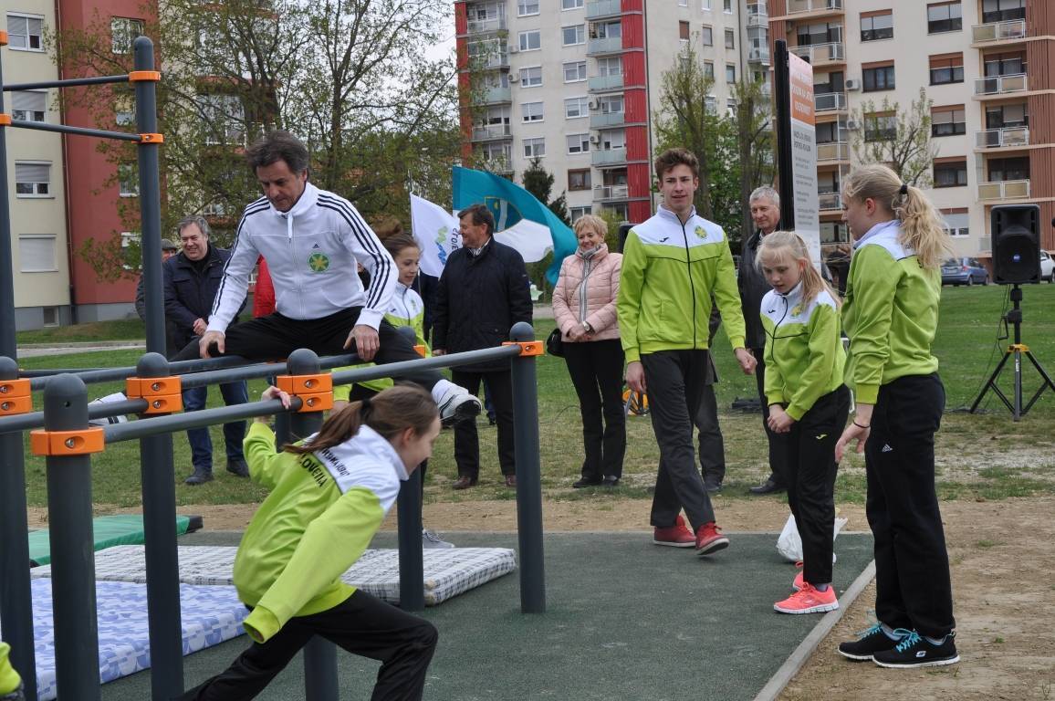 Danes je kljub vetrovnemu vremenu bilo na Mojstrski ulici veselo in športno obarvano, saj je svojemu namenu bil predan nov športni poligon za ulično vadbo.