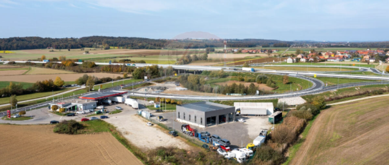 Naprodaj je logistični center s skladiščno-servisnim objektom in velikim zemljiščem.