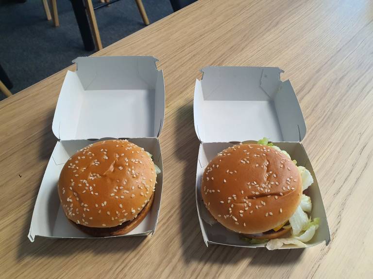 Glede velikosti burgerjev in prvega vtisa lahko rečemo, da sta bila burgerja na prvi pogled res videti kot običajna burgerja iz Mcdonald'sa, na primer kot burger Big Tasty.