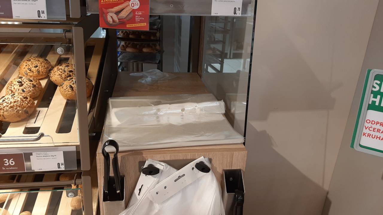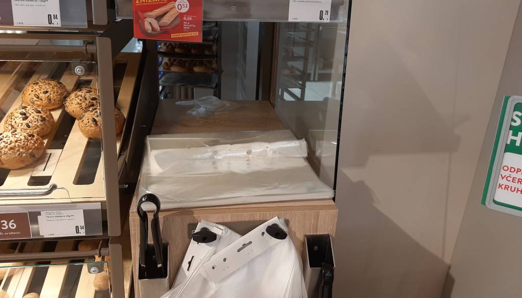 V prodajalni Spar Partner Blagovnica na Slovenski ulici v Murski Soboti smo pred kratkim opazili, da je bila za pekovske izdelke namesto papirnate embalaže na voljo le plastična.