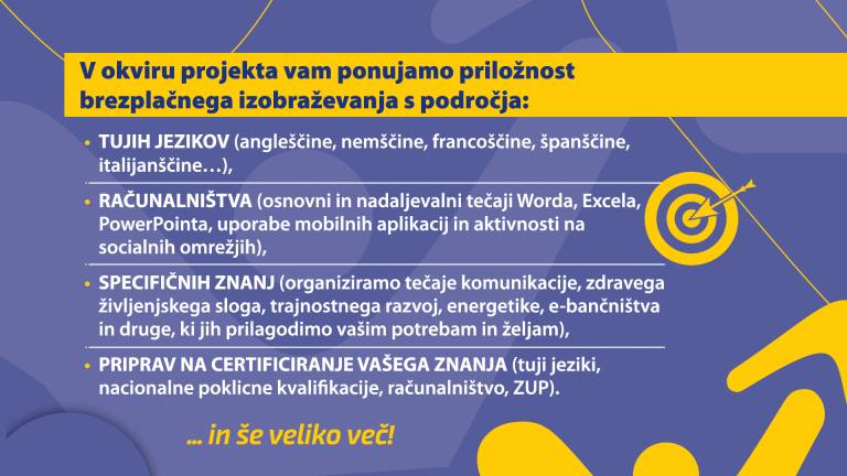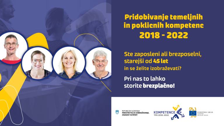 Se želite učiti tujih jezikov ali osvojiti osnove računalništva? V sklopu projekta Pridobivanje temeljnih in poklicnih kompetenc 2018 - 2022 se lahko naučite tudi pravilne komunikacije na delovnem mestu.