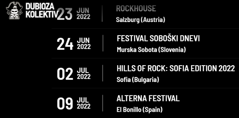 Na njihovi uradni spletni strani so namreč objavili seznam koncertov, ki jih bodo izvedli v prihodnje v sklopu turneje. In sicer kot je razvidno iz seznama, bodo na festivalu Soboški dnevi nastopili v petek, 24. junija.