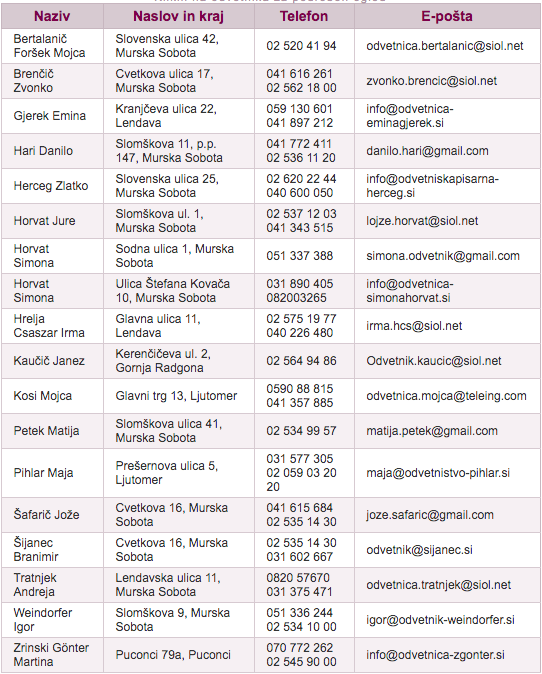 Brezplačno pravno pomoč bo nudilo tudi osemnajst odvetnikov iz Pomurja, ki si jih lahko ogledate na spodnjem seznamu. Seznam odvetnikov iz drugih slovenskih krajev pa najdete tukaj.