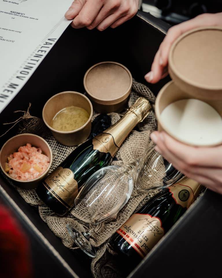 Valentinovi kulinarični paketi so sestavljeni za 2 osebi. V vsak paket so vključili tudi dve penini Radgonskih goric.