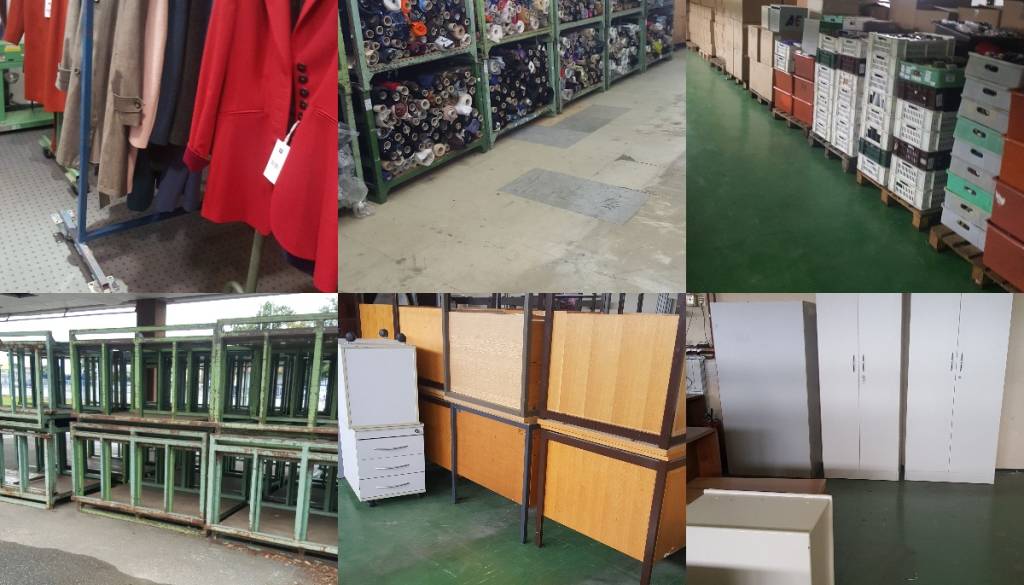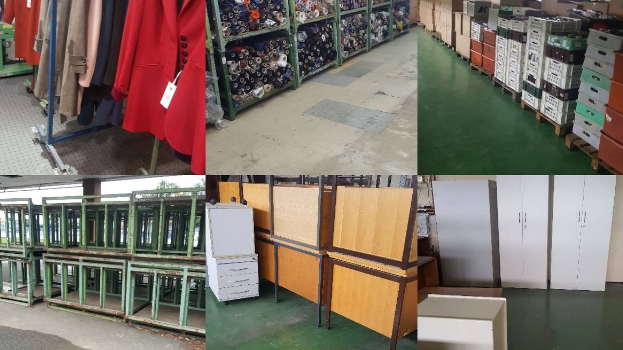 V nekdanjem obratu moških oblačil Tovarne Mura so na ogled in prodajo oblačila, blago, sukanci ter pisarniško pohištvo.